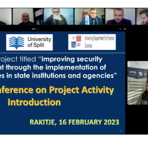 RACVIAC je organizirao “Online konferenciju o uvodu u projektne aktivnosti” koja je održana u četvrtak, 16. veljače 2023. putem Video TeleConference Systema (VTCS) u partnerstvu sa Sveučilištem u Splitu, Odjelom za forenzične znanosti. Ovo je prvi događaj u petogodišnjoj seriji projekata koju su pokrenuli RACVIAC i Odjel za forenzične znanosti Sveučilišta u Splitu pod nazivom „Unaprjeđenje upravljanja sigurnošću kroz implementaciju forenzičkih znanosti u državnim institucijama i agencijama“. Memorandum o razumijevanju za ovaj projekt potpisan je 28. rujna 2022.