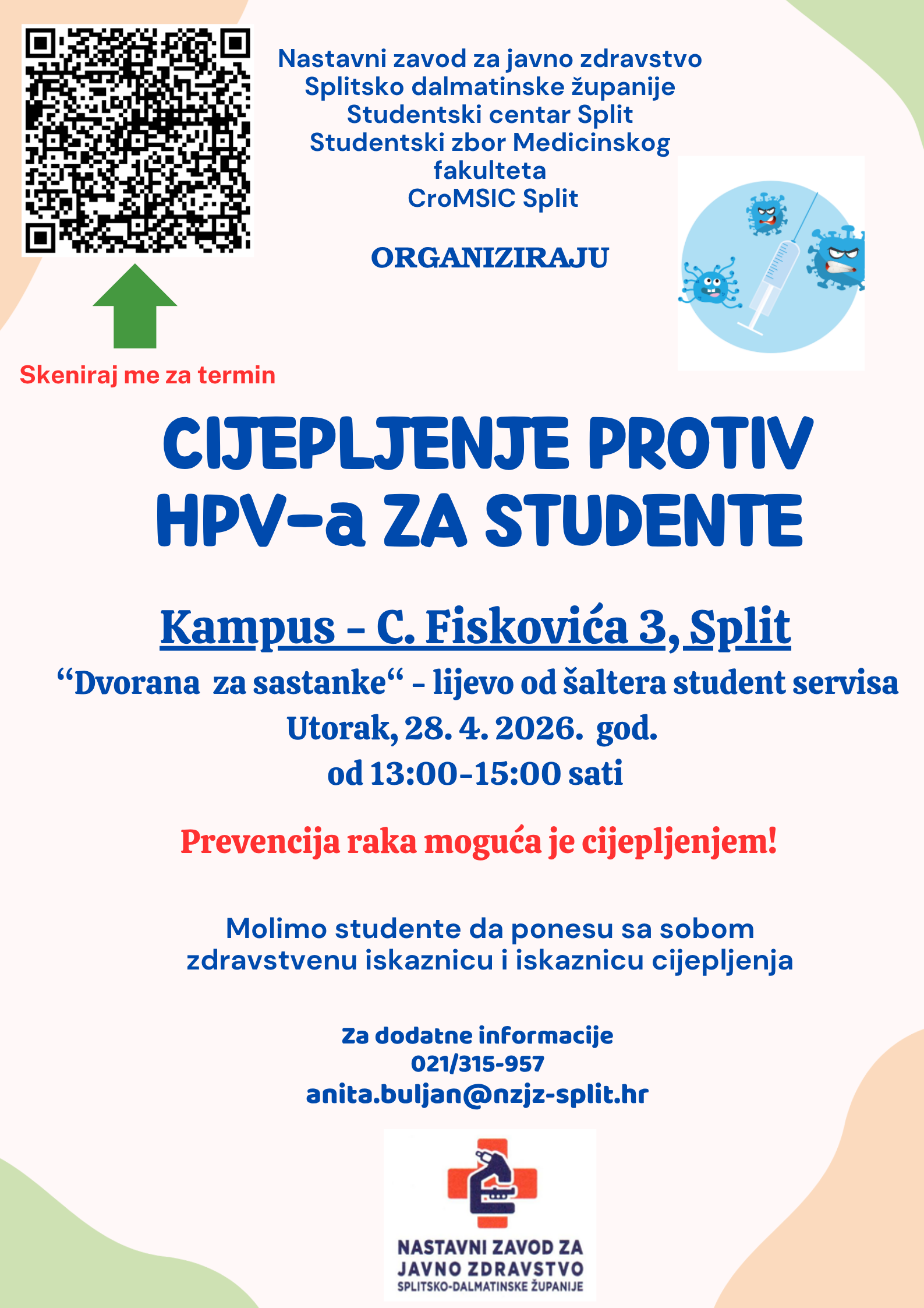 Obavijest o organizaciji cijepljenja protiv HPV-a za studente